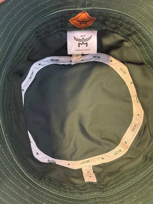 MCM Sherpa Logo Bucket Hat Fischerhut Mütze grün & rot limited NEU